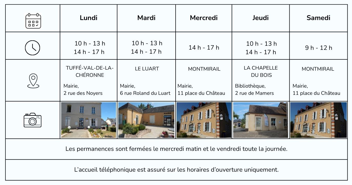 France services est ouvert 24 h au total par semaine sur quatre sites différents avec des jours et horaires de permanences spécifiques.